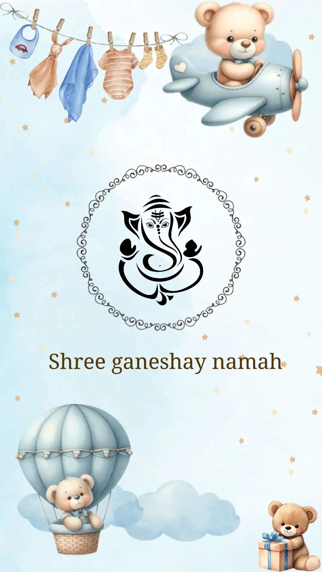 A beautiful Indian baby shower invitation card featuring soft pastel colors, cute baby illustrations, and traditional godh bharai elements. Ideal for digital sharing and easy customization.